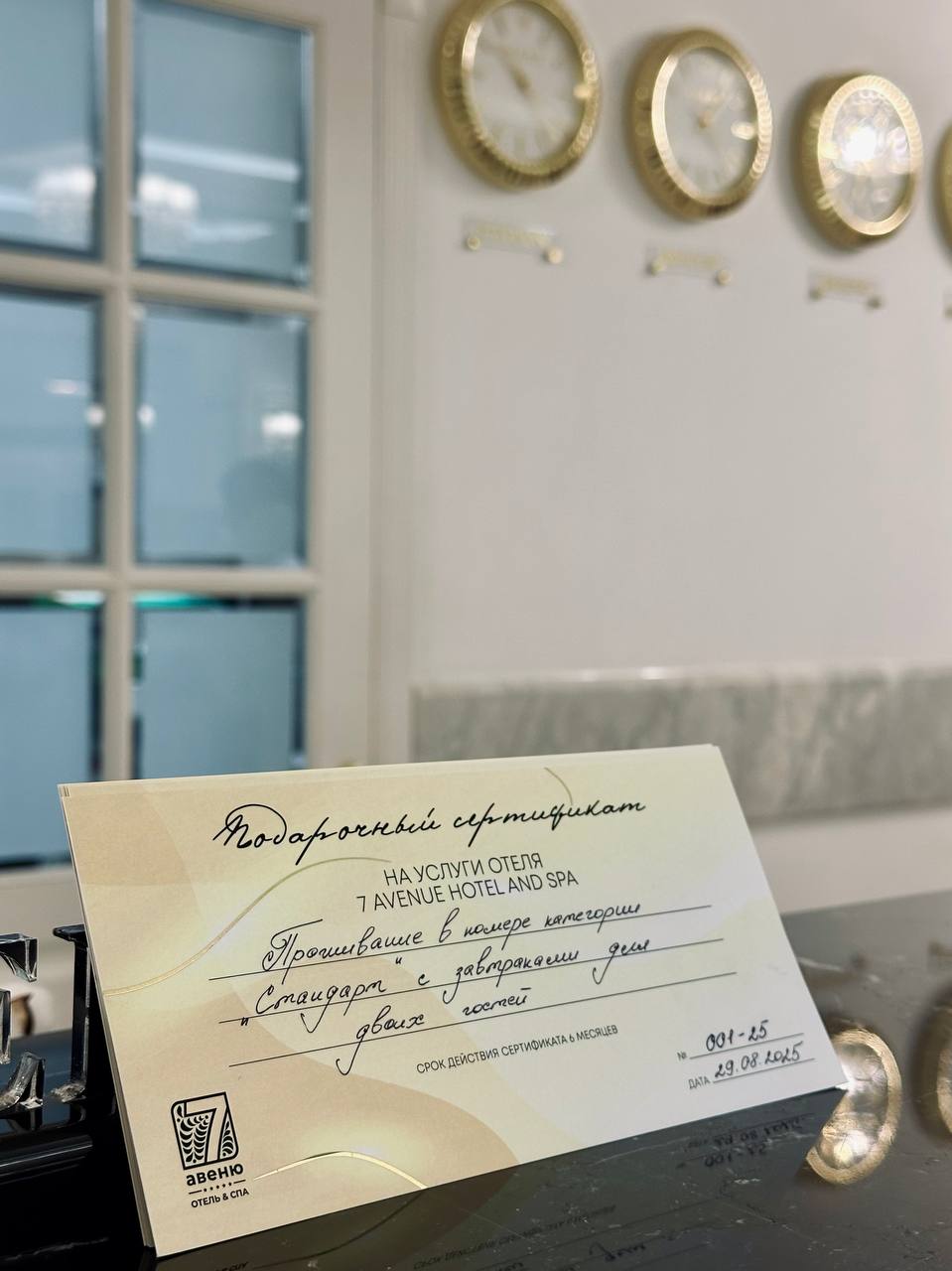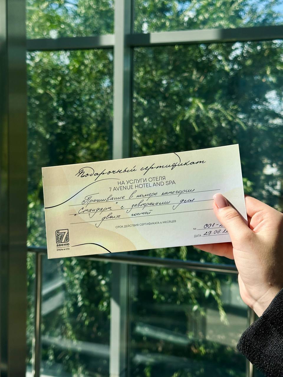 Вы можете приобрести подарочный сертификат на следующие услуги отеля 7 Avenue Hotel & SPA: